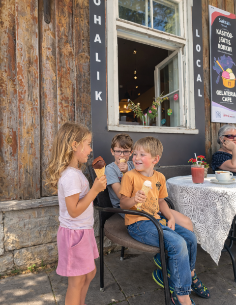 Siin asub meie jäätiseköök ja kohvik. Siin on suur lasteala, päikeseterass ja pikalt aega päeva ja jäätise nautimiseks.
